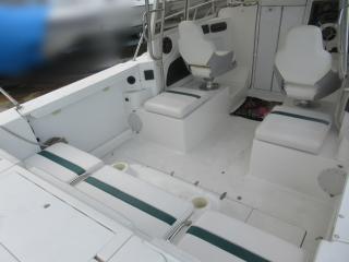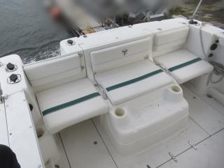 アフトデッキの広さはクルージングでは5人程着座できるシートが有り、着座シートを外すと2~3人での釣りができるスペースは確保されております。