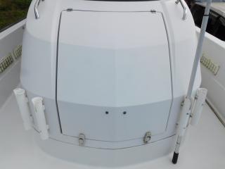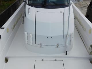 キャビン前部にはボンネットハッチがあり、バウバースから釣り竿などの出し入れができ重宝します。