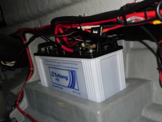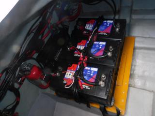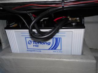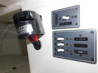 バッテリーはツインシステムで130F51が4個装備され、更にミンコタ用ディープサイクルバッテリーM31MFが3個、バッテリーチャージャーも装備、充電状況も充分でエンジン始動を含め良好です。