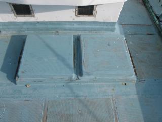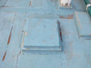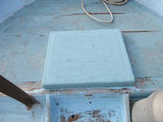 アフトデッキには3ヶ所の物入れと1ヶ所の舵場と点検窓スペースが有ります。