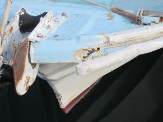 ★船首左舷先端部のガンネル(写真:7)が一部もげてます。