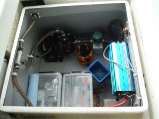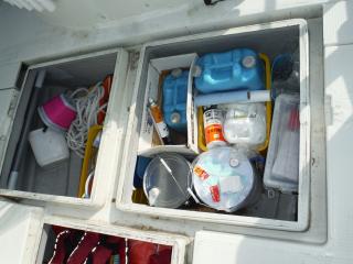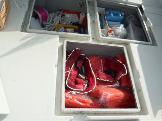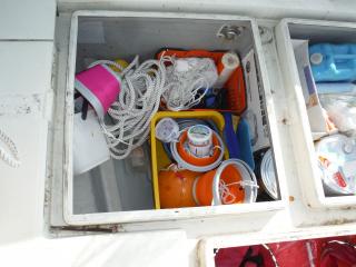 バウスラスター、ソナー、魚探、家庭用エアコン(故障中)、個室トイレ、リールコンセント(10ヶ所)、海水蛇口(10ヶ所)、氷室 他 充実装備です。
