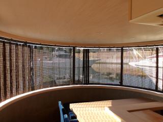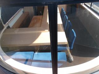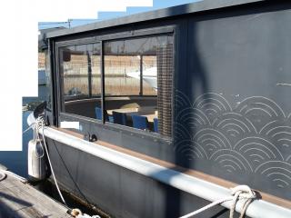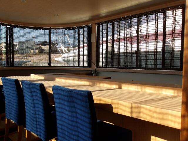 現代的なデザインで船首は局面ガラスで開閉が出来船内は関節照明が各部にほどこされており夜のクルージングを演出します。