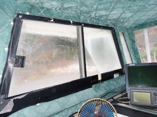 ◆操船部は明るく両側の窓はスライド式です。またフロントガラスは回転窓仕様です。