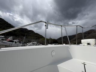 船首のキャスティングレールは別注にて制作されておりジギング、キャスティングには大変便利で船首のスペースを最大限にご使用になれます。