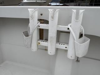 別注で制作されたバウレールは高さも有り船首でのキャスティングやジギングなど便利な装備です。