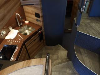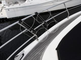 バウ、スタンともにスラスターが有り扱いやすいサイズの高級サロンクルーザーです。