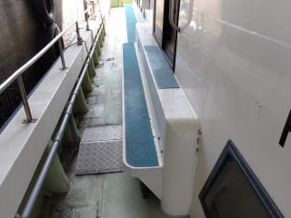 JCI登録の19t艇で限定沿海で14名平水区域で80名乘れる旅客船になりますがキャビン横にも着座出来る長椅子もあり十分に遊漁船としてもご使用出来る艇になります。