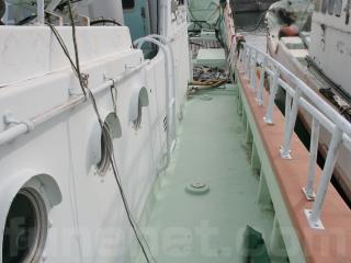 Please note that it has been docked since around 2004 and has never been in operation, so restoration will require a large amount of money. The hull is made by Ehime Plastic Shipyard in Uwajima City, Ehime Prefecture, which has a reputation for manufacturing tuna boats and skipjack boats.