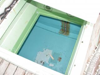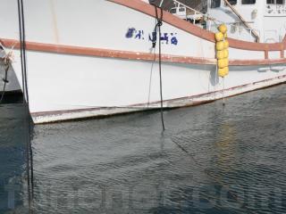 取材時は係留状態で船底の確認はできませんでした。長期間動かしていませんので、船底は掃除が必要です。