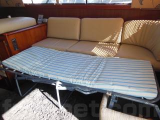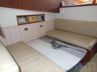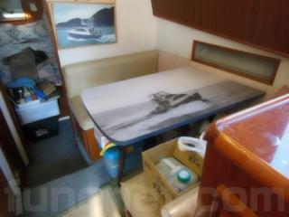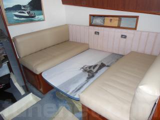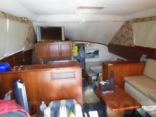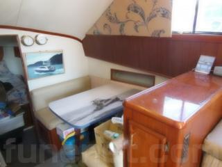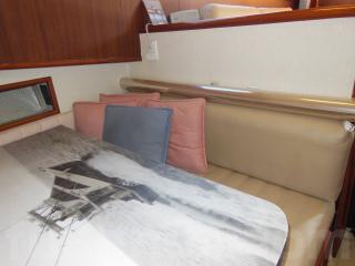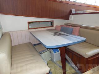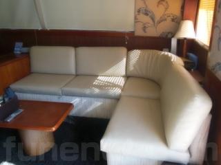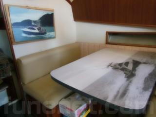 まず、入口をはいるとセンターキャビンになります。センターキャビンにはゆったりとくつろげるソファーが右舷に装備されています。また、テーブルもありますのでお見えになったゲストの方々にも喜んで頂けるスペースになっております。