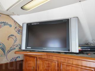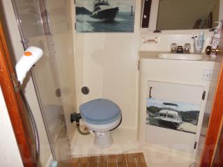 船内にはマリントイレ、シャワー、エアコン(家庭用)、ステレオ、セントラルクリーナー等も装備されています。マリンエアコンの装備はありますが、いつもは使用しておりません。効き具合が不明です。通常は家庭用のエアコンを使用しています。