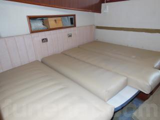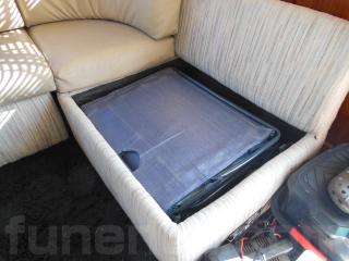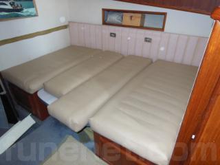 ソファーの張替えや木目調のダイノックスの壁へ張り替えたりされて、落ち着いたキャビンになっています。写真の通り、メインキャビンのソファーとダイネットスペースは共にダブルベッドに変わりますので、ベッドスペースが十分に確保されています。
