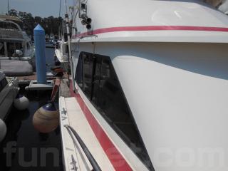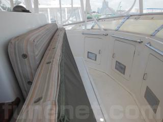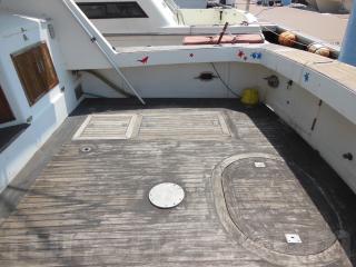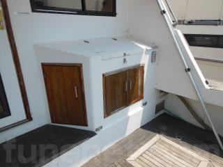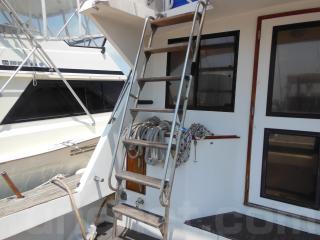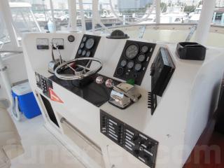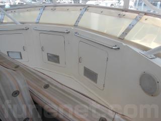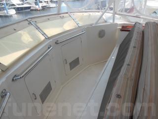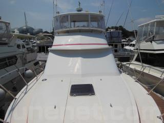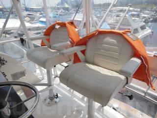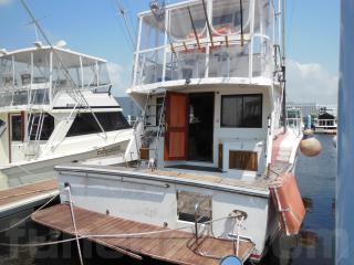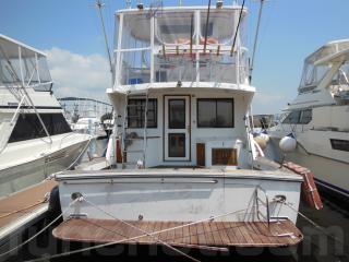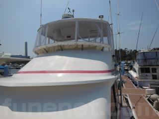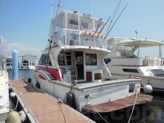 この艇はBERTRAMやBLACK FINの設計で有名なCJジャネス氏の設計で台湾の造船所で造られた艇体です。設計から波あたりも良く、走破性も良いのが有名です。
