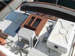 後部デッキも広く、トランサムステップには、はしごも付いているので、シュノーケリングやダイビングなどマリンレジャーをやる方にはとても便利です!
