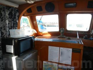 巡航速度10ノット、最高速度12ノットです。燃料タンク容量は1324リッター清水タンク容量は832リットルです。