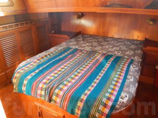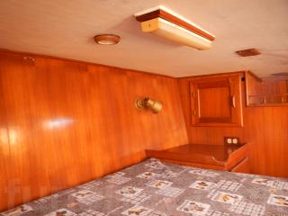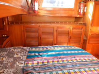 後方はオーナーズルームになっています。大きなダブルベッド、広く使いやすいトイレルーム、バスタブ付きの広々したシャワールーム、女性に優しいミラー、多くの収納等の装備があります。
