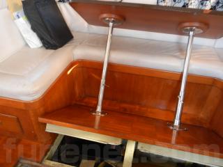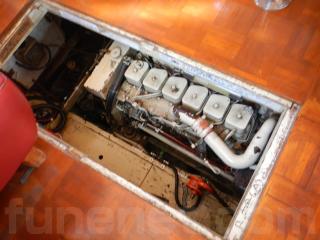 センターキャビンの床を外すと機関場になります。隣のテーブルも倒すことができるので、メンテナンスなどにもかなり広くスペースを確保することが出来ます。