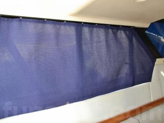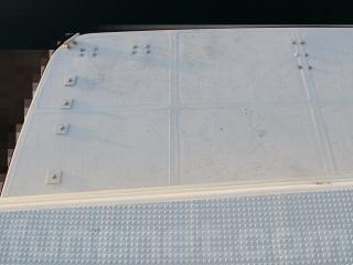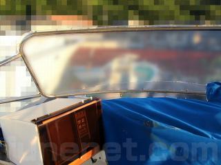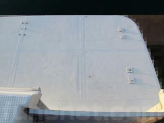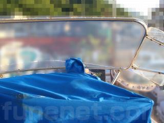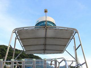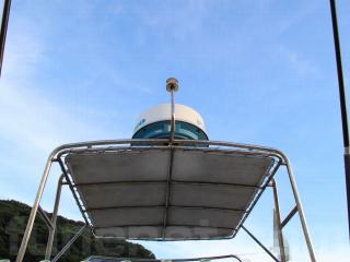 ◆シート上にはオーニングが付いています。取材時はオーニングのテント生地に破れなどは無いように見受けられました。オーニングの上には古野のレドーム・レーダーアンテナが付いています。