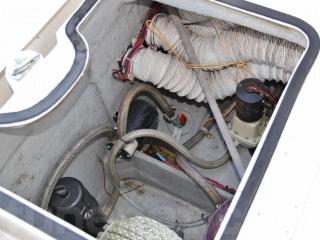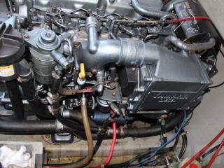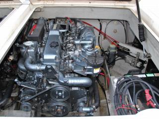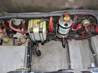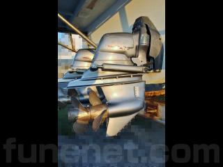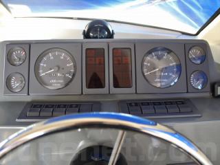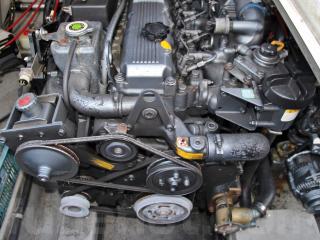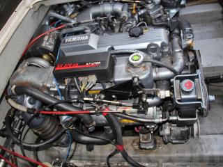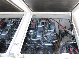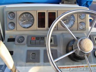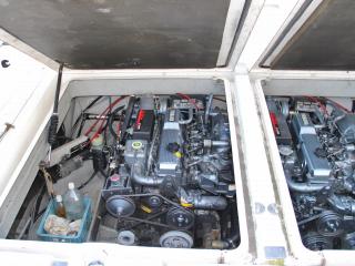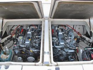 ◆エンジンはヤマハ製過給機付き直列4気筒直噴ディーゼルエンジンSX370KS(連続最大出力150PS/3,300rpm)を2基搭載しています。また、取材時のエンジンアワーメーターは左エンジンが約1,548時間、右エンジンが約1,509時間でした。現在この艇は陸に上架して乗っていませんので、エンジンアワーが大きく増える事はないと思われます。