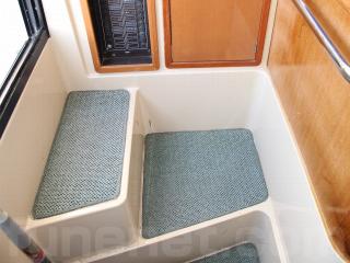 ◆この艇はフライングブリッジへのアクセスが「はしご」ではなく「階段」になっているのも特徴です。乗降が楽だと感じられると思います。