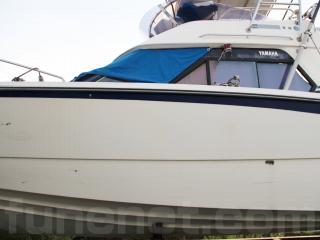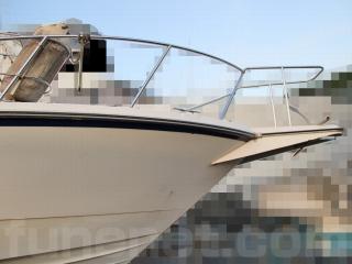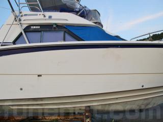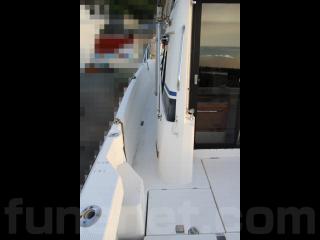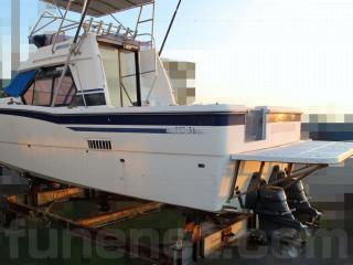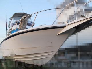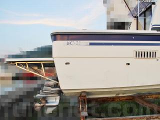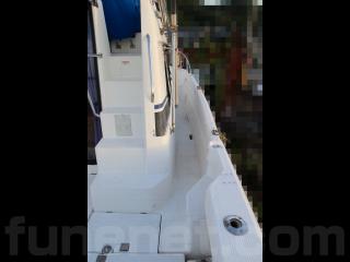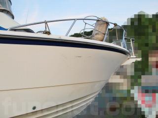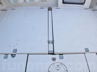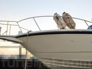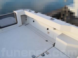 ◆平成9年進水のFC-31-3です。いわゆる「セミウォークアラウンド」のようなデッキで、フロントデッキへの行き来もしやすく、ヤマハのPCなどよりも釣りやレジャーも楽しみやすい艇といえるかもしれません。全体的には船齢なりの経年劣化や小傷は見受けられますが、航行に問題があるような大きな損傷などは無いように見受けられます。