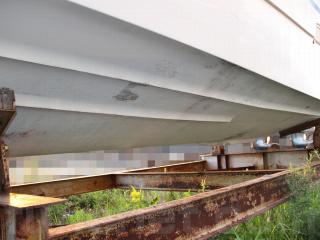 ◆船底塗装は現在剥がしていますが、かつて、船底塗料を塗られていたようです。船底も航行に影響があるような大きな損傷などは見受けられませんでした。なお、現在は陸上保管ですので、船底も確認していただく事が可能ですが、試乗される場合は試乗日前日に下架される可能性もあるとお考え下さい。現地には上下架設備がございませんので、上下架はその都度ラフターを準備するように致します。