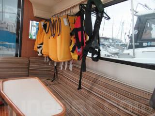 主だった装備品はアンカー、アンカーウィンチ、デッキライト、ロッドホルダー、アウトリガー、デッキシャワー、デッキウォッシュ、スイミングステップ等が装備されています。