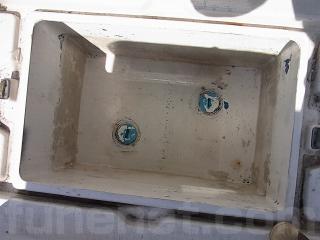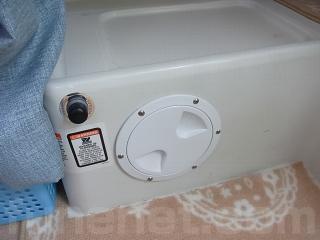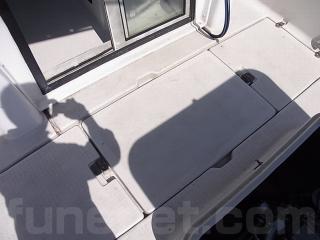 操舵室すぐ後ろに生け簀と物入れがあります。フラットタイプです。
