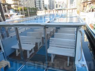 東京都内をクルーズする場合には低い橋がとても多いので、このような形のクルーズ船がとても便利です。