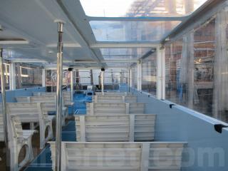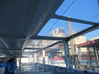雨や風をしっかりと防ぐことが出来る屋根や窓があります。天井部分は外側半分がガラスになっていますので、座席に座りながらでも上を見上げることが出来ます。横窓も開閉式になっていますので解放感があります。