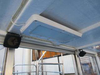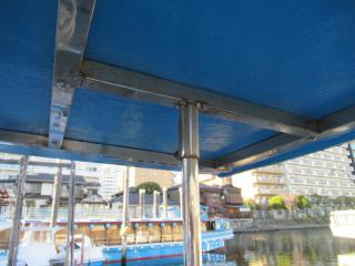 操船席は低い橋などを通過することが出来るように、屋根は上下可動式になっています。また、風防も折りたたみ式になっています。