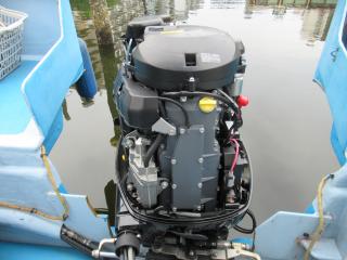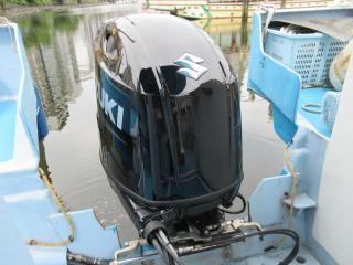 エンジンは2024年春に載せ替えを行っています。スズキ社製175馬力4ストロークの船外機です。使用時間は6時間です。