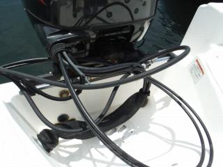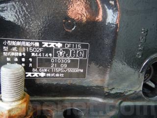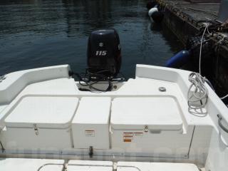 エンジンは、スズキ4スト 115馬力船外機で、約6年前に現在の展示品であった新品エンジンを換装され、片道数分の目的地への移動に使われる程度のため、使用時間はわずか33時間程度です。
