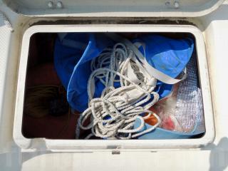 ◆デッキ後方には、左から、ロッカースペース・センターイケス・右は燃料タンクとなっております。