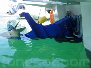 係留保管されていますので、ハルには軽微な汚れもありますが、特別に大きなダメージはありません。