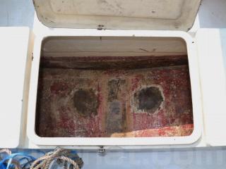 ◆デッキの中央には本来イケスになっていたと思われるストレージがありますが(写真No,13~15)FRPで穴埋めされています。