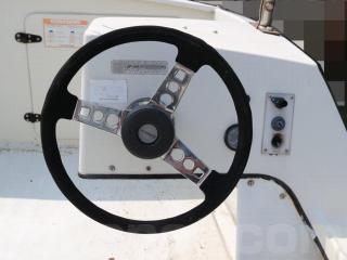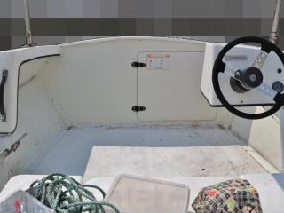 ◆操船部はブルワークが内側に飛び出たような構造になっている為、ヘルムハンドルの下にも空間があり、デッキの広さを損なっていません。約2m弱の船幅と相まって17フィートというコンパクトな艇としてはデッキ面積が広く感じます。