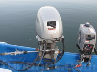 ホンデックスのGPS魚探に子機エンジン(トーハツ2スト4馬力)も付いています。