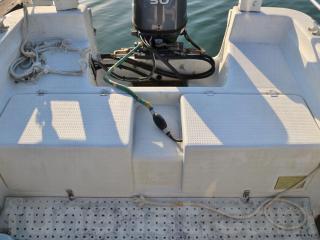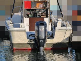 ◆船外機は2010年6月製造品のヤマハ製のF50FET(型式:6C1 連続最大出力50PS/6000rpm))が搭載されています。取材時には船底が汚れている為、全開航行はしませんでしたので最高速は不明です。なお、取材時のエンジンランタイムは855時間でした。