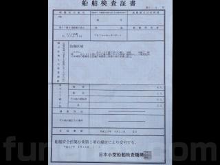 ◆この艇は「日本小型船舶検査機構(JCI)」の登録船で、新造、進水は昭和60年9月と記載がございます。なお、次回、定期検査の受検期限は平成33年(2021年)4月21日となっています。
