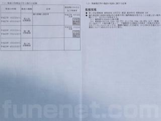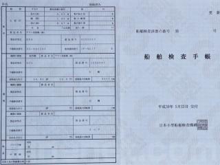 ◆この艇の正確な情報をお伝えする為に船舶検査証書と検査手帳を個人情報を伏せた状態で掲載しています。船体やエンジンの型式、定員、用途、登録上の船体寸法、航行区域、航行上の条件、進水年月日、検査の状況などをご確認下さい。