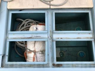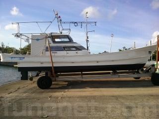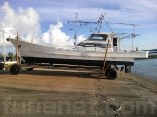 現在は離島に陸上保管をしていますので、エンジン始動確認及び試乗を行っていません。ですから沖乗りでの状態や細かい所までは解りかねますので、実際にご見学ご試乗いただき、装備品や計器類の細かい動作など全てをご確認くださり、納得の上でご購入を下さいますようお願い致します。