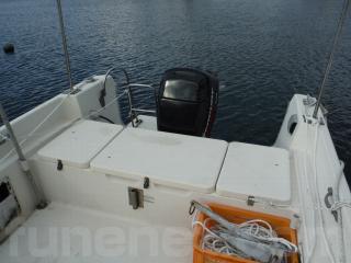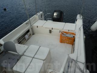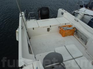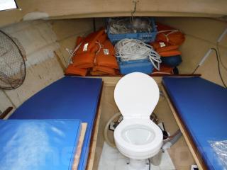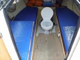 広い後部デッキに、キャビン、マリントイレも装備しています。