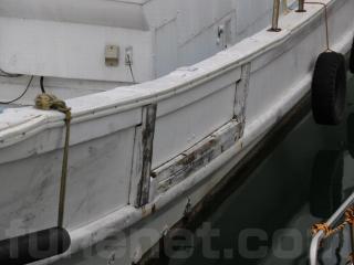 ◆この船体は船首が大きく反り上がっているので、前方が見づらい為、オーナー様が船首を低くする加工をされています。船体は船齢なりの経年劣化があり、船尾左舷側角に補修痕があるものの艇全体的に航行に支障があるような箇所は無いように見受けられました。