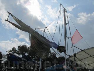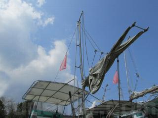 頑丈なスパンカー、ワイドなオーニングがセットされています。
