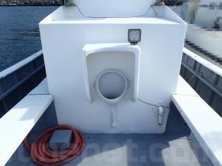 〇広々としたデッキでフラットデッキとなっていますので、足元がひっかかることなく、安心して釣りができます。また、トイレや電動リール電源、手洗いポンプもありますので釣りするのにはお勧めです。