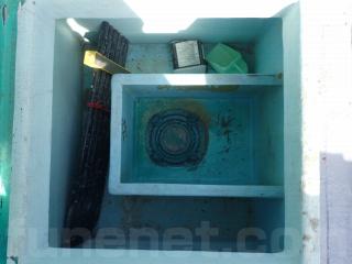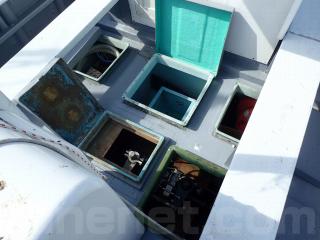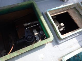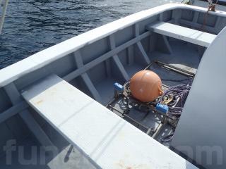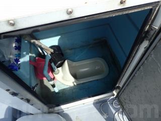 〇おもて側のハッチ内には、ソナーの振動信が設置されています。物入れハッチもしっかりしています。