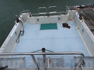 ◆艫デッキは広く作業性は良いです、デッキ下に補機を積んでいます、ヤンマーエンジンで発電機7キロを回します。