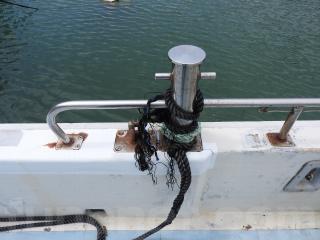 ◆デッキは硬いです、バウデッキのノンスリップの張物がはがれています。